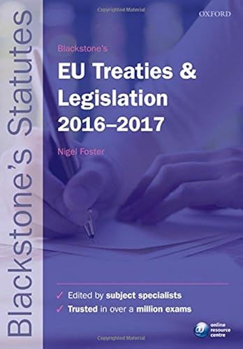 Blackstone's EU Treaties & Legislation 2017-2018 ~ Blackstone's EU Treaties & Legislation 2017-2018 (Blackstone's Statute Series) Paperback – 27 July 2017 by Nigel Foster (Editor) 4.5 out of 5 stars 32 ratings. See all formats and editions Hide other formats and editions. Amazon Price New from Used from Paperback, 27 July 2017 "Please retry" £3.26 . £9.36: £0.60 : Paperback £3.26 40 Used from £0.60 2 New from £9.36 Arrives: Nov 7 - 10 .